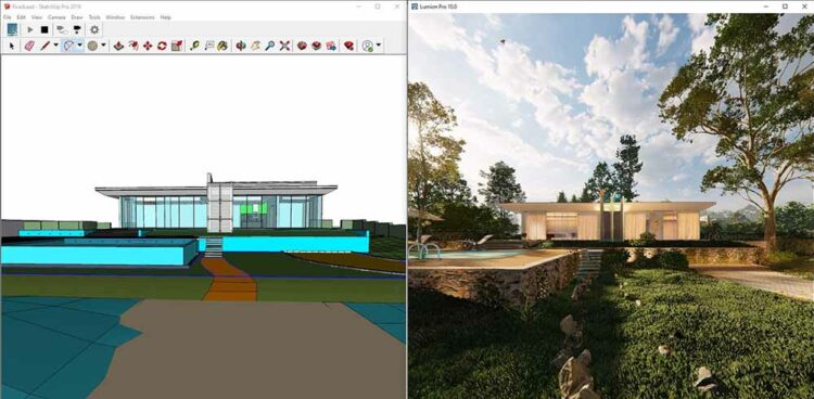 Modélisez votre maquette numérique sous Sketchup puis faites-la évoluer dans l’environnement réaliste de Lumion pour réaliser votre rendu 3D..